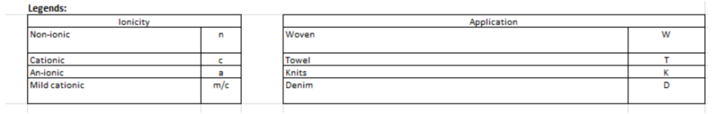 | 8 | Adva ELTEX-DHC | a | Liquid | Wetting agent for denim ,APEO/NPEO free | W, T, D |